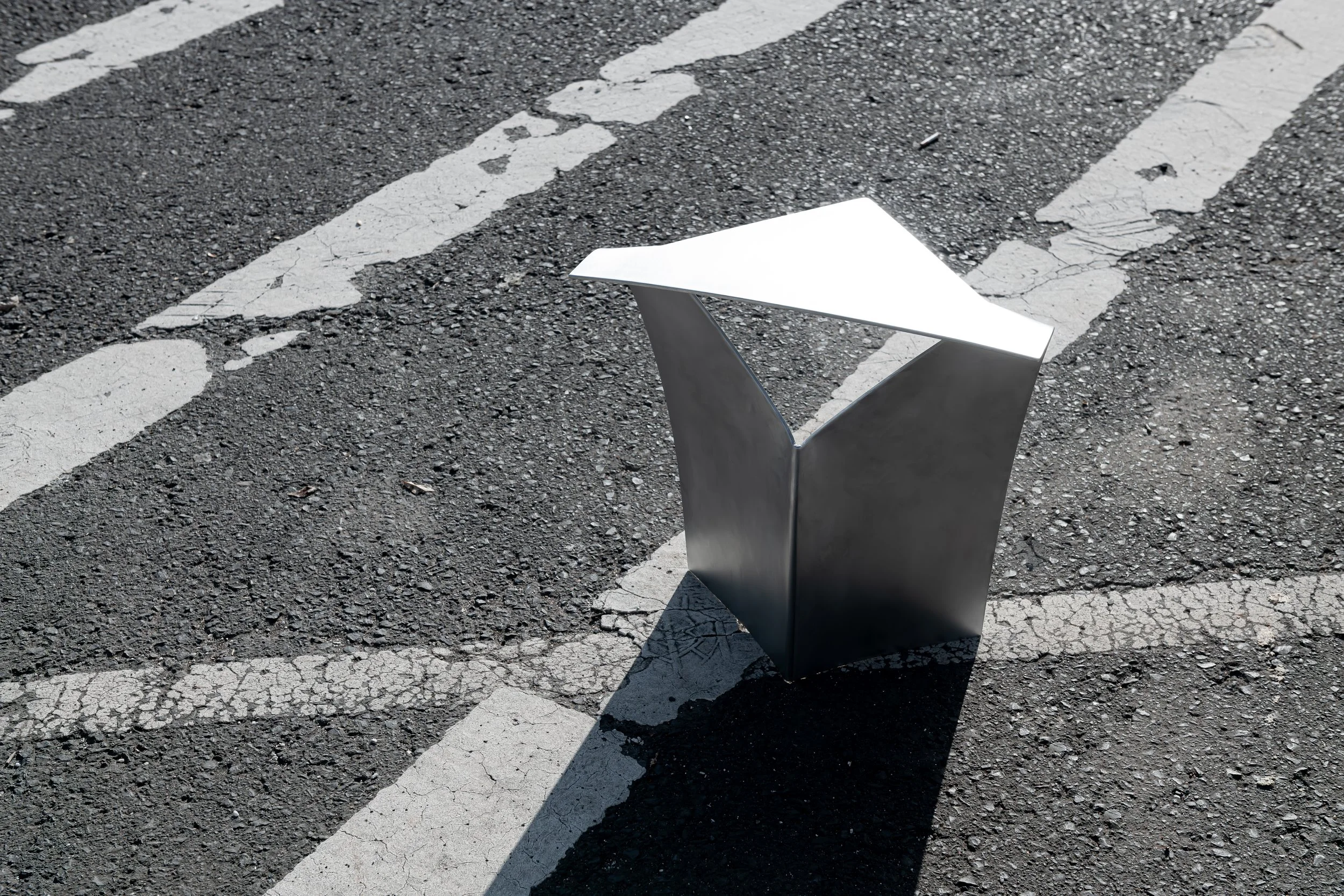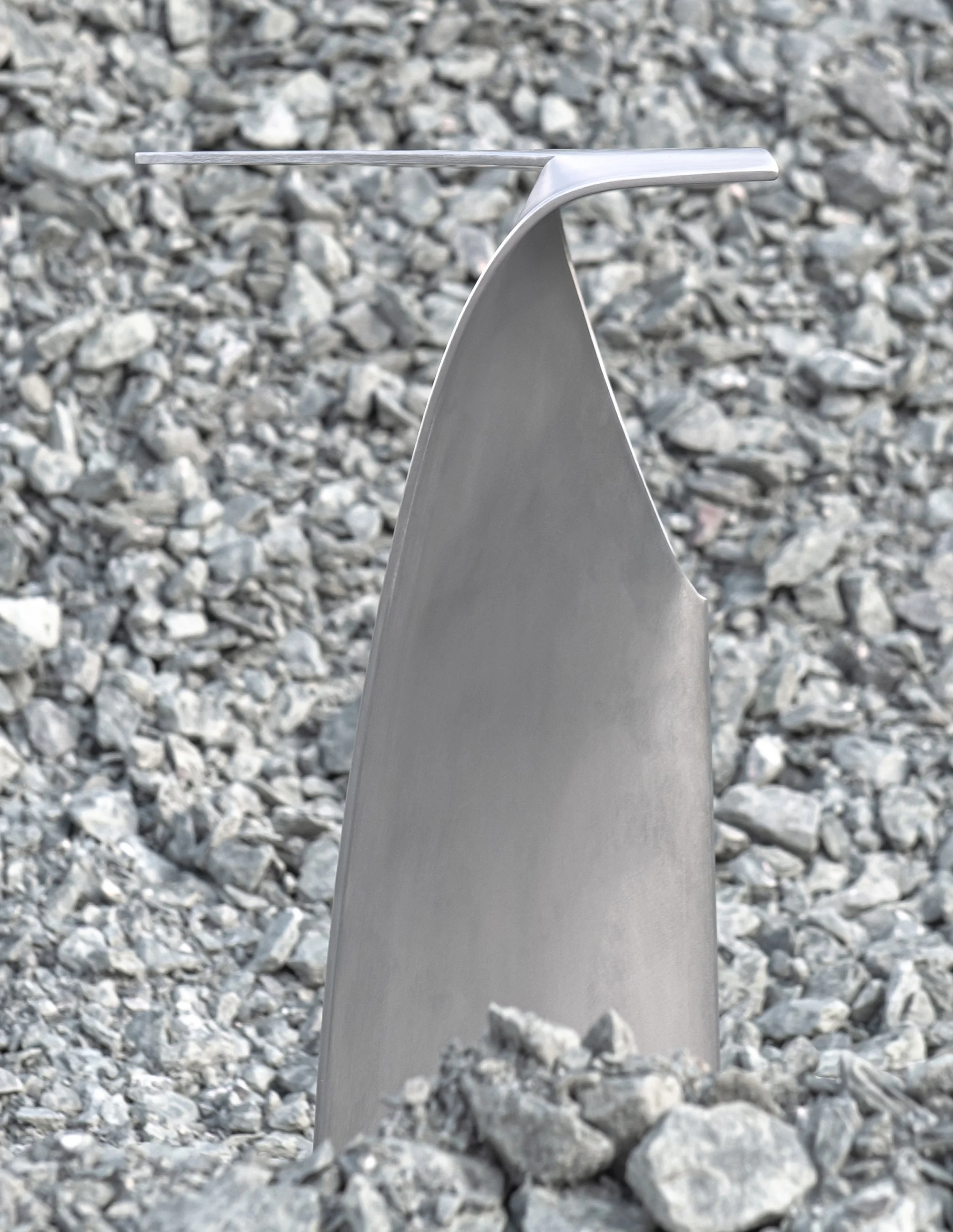 The Stool 56 is crafted from a single piece of aluminum and shaped into its final form through a precise bending process. First, the material is stamped according to the cutting pattern. It is then formed in two controlled bending steps using a hydraulic die. The seat surface is smoothly curved upward in a continuous motion, while a precise 90-degree bend at the base ensures stability and a secure stance. Thanks to this manufacturing method, no joints, welds, or additional fasteners are required. This minimizes material usage, increases durability, and results in a seamless, clear design language. The construction remains not only lightweight and stable but also free of unnecessary additional components. After shaping, the aluminum undergoes a multi-step finishing process: it is first deburred, then smoothed with fine wet sandpaper (grit 500), and finally refined with a non-woven abrasive pad. This treatment ensures a uniform surface while also giving the material a subtle texture. By focusing on cutting, bending, and finishing, the object optimizes material use, production efficiency, and surface refinement, resulting in a precise OBJECT.